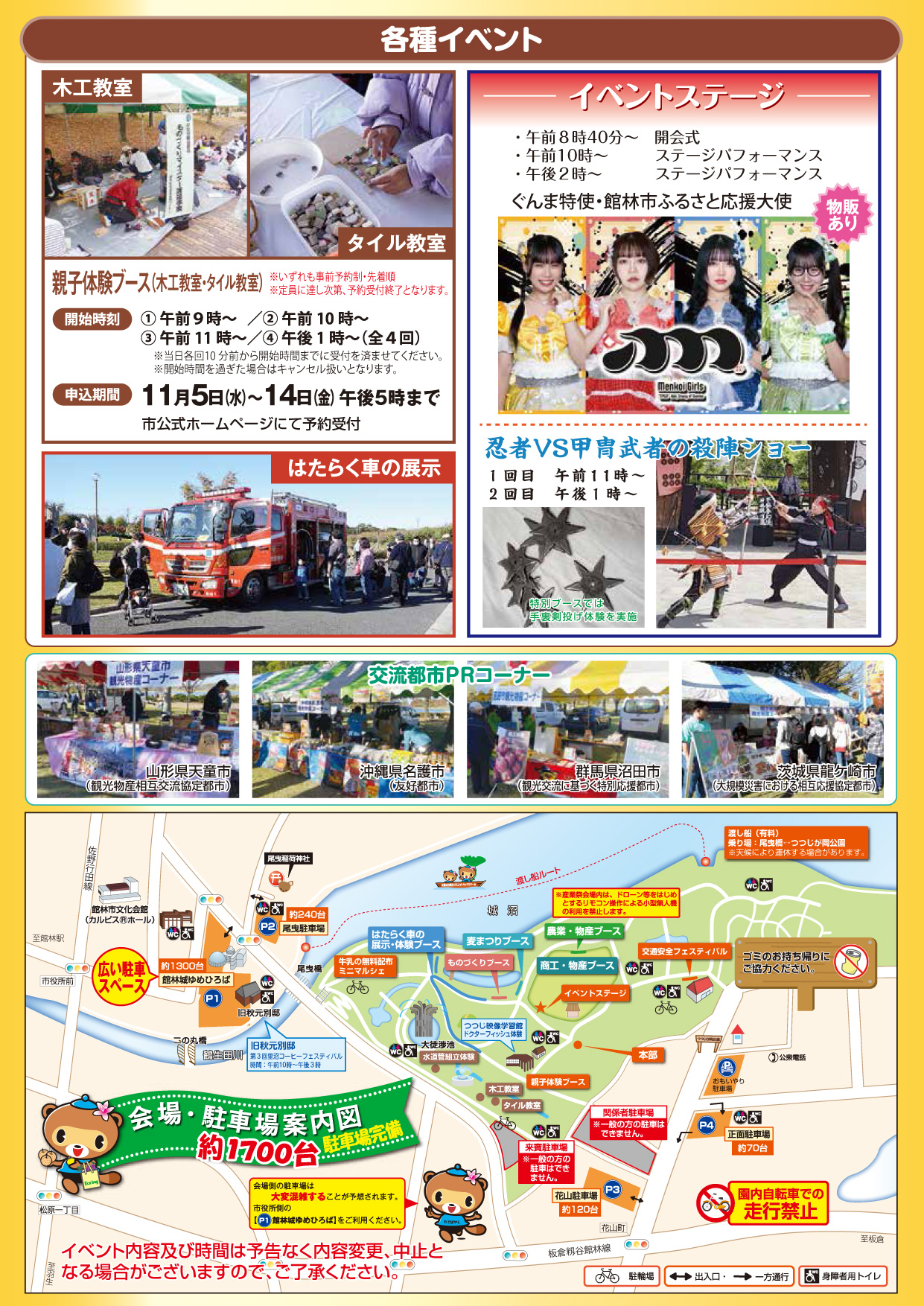 会場はつつじが岡公園、花山うどんのブースは本部近くの場所です。