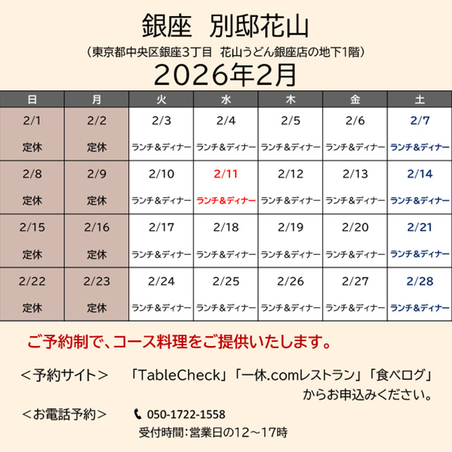 ⚠️いつもは日曜定休ですが、2/22(日)は営業し、2/24(火)に代休をいただきます。