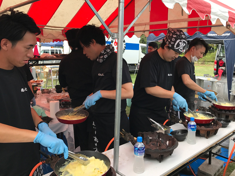 絶対に負けたくない勝負の場で、また、イベント会場の仮設の調理設備で、銀座店と同じクオリティーでご提供するのは難題でしたが、銀座店オープン1周年の御礼として地元館林のお客様にこのメニューをお召し上がり頂きたい思いが勝りました。